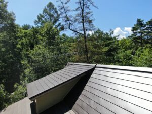 急勾配の屋根での仕事はいつも以上に職人さんは神経を使いながら作業を行っています。